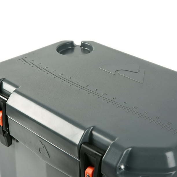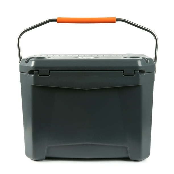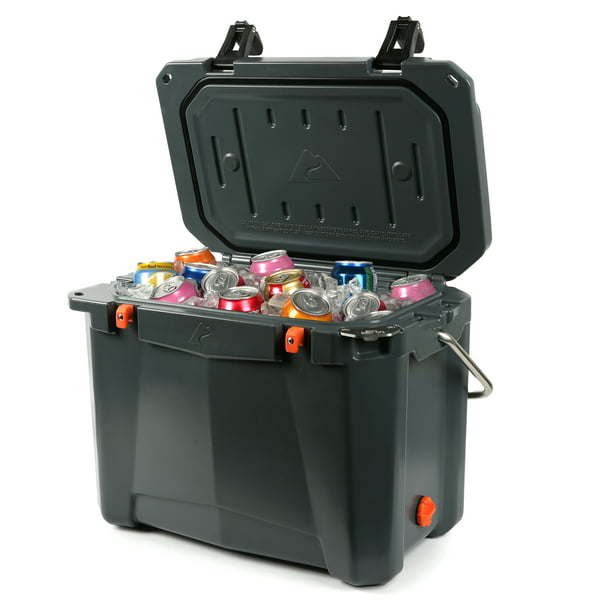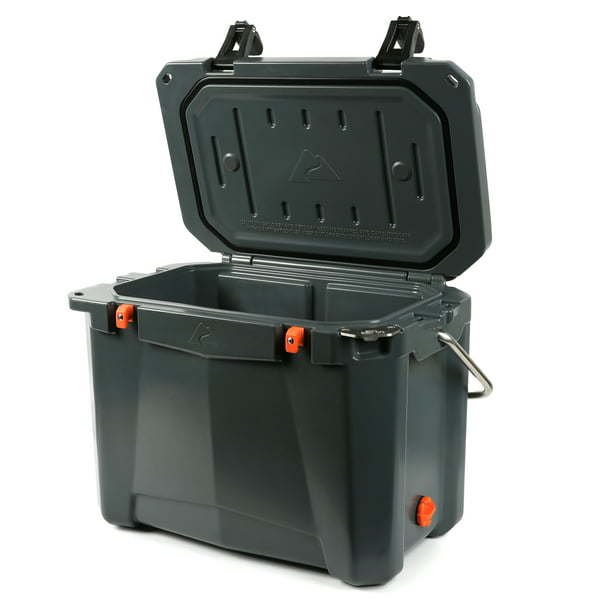 Ozark Trail 26 Quart High Performance Roto-Molded Cooler with Microban®, Grey Premium insulation keeps ice for days Portable cooler is roto-molded, seamless, one-piece construction with UV-resistant exterior Air-tight, super-seal gasket keeps the cold in and the heat out Includes new, easy open cam latches Heavy duty handles with comfort grip Industrial strength, stainless steel locking plate with built-in bottle opener Certified bear-resistant by the Interagency Grizzly Bear Committee With fish ruler and 2 drink holders on lid Limited 5 Year Warranty